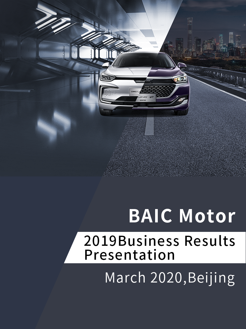 This presentation and any information contained in this presentation is not a recommendation or suggestion for buying or selling any stock of BAIC Motor Corporation., Ltd ("The Company") , and is not an offer for buying or selling any stock of The Company, and is not basis or evidence for any contract or promise either. We make no any authorized or implied representations or warrants for the impartiality, accuracy, completeness or correctness of any information or opinions contained in this presentation and any individual or group or company or organization shall not rely on the said information or opinions. Neither The Company nor any adviser or consultant or representative of The Company shall be liable for any loss of any nature caused by using this presentation or any part of its contents or relating to this presentation for any other reason.