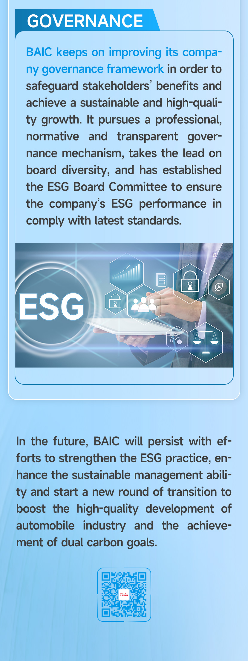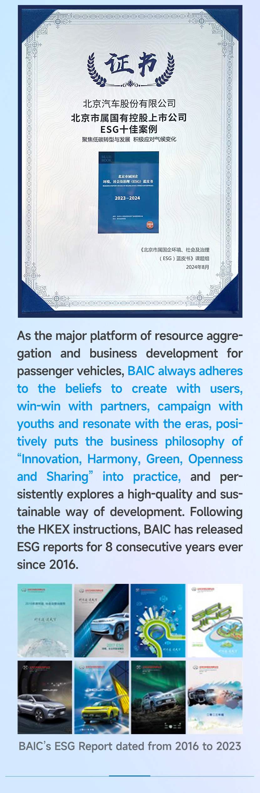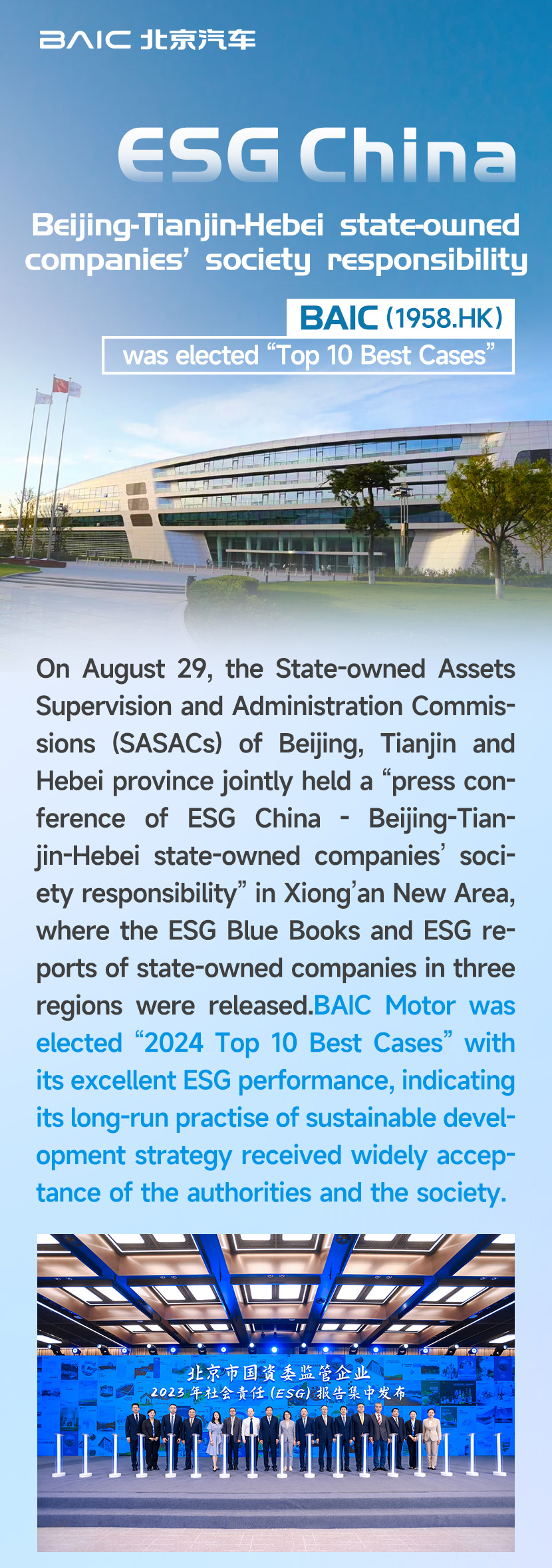 BAIC was elected “Top 10 Best Cases in the ESG blue book of Beijing state-owned holding listed companies”