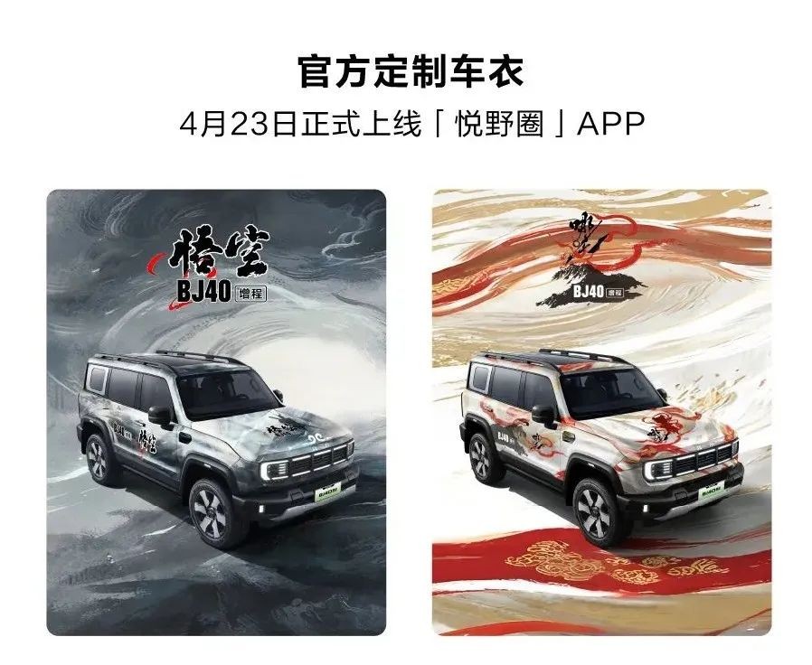 此外,BJ40增程官改套件“絲路鐵騎”受到用戶廣泛喜愛,上線僅15天銷量破千。“黑悟空”和“哪吒”兩款定制車衣當日也正式上線。