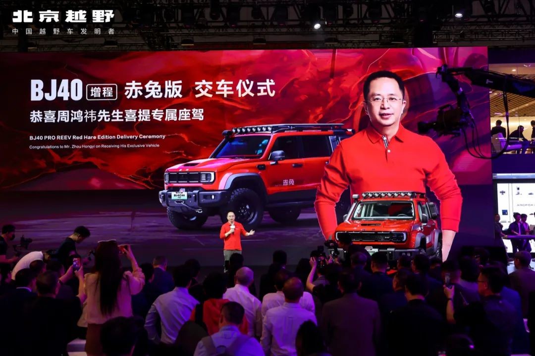 發布會現場,BJ40增程赤兔版驚艷亮相,成為全場焦點。赤兔版在顏值、性能和安全三大方面進行了全方位升級——顏值升級,以火焰紅為主色調,十余項外觀進階,大幅提升整車視覺沖擊力;性能升級,加裝高氮氣減震、大尺寸越野輪胎、高流量進氣涉水喉以及高穿透性射燈,大幅提升越野性能;安全升級,由內而外、內阻外護,為用戶保駕護航。首發價299,800元的價格,誠意十足。
